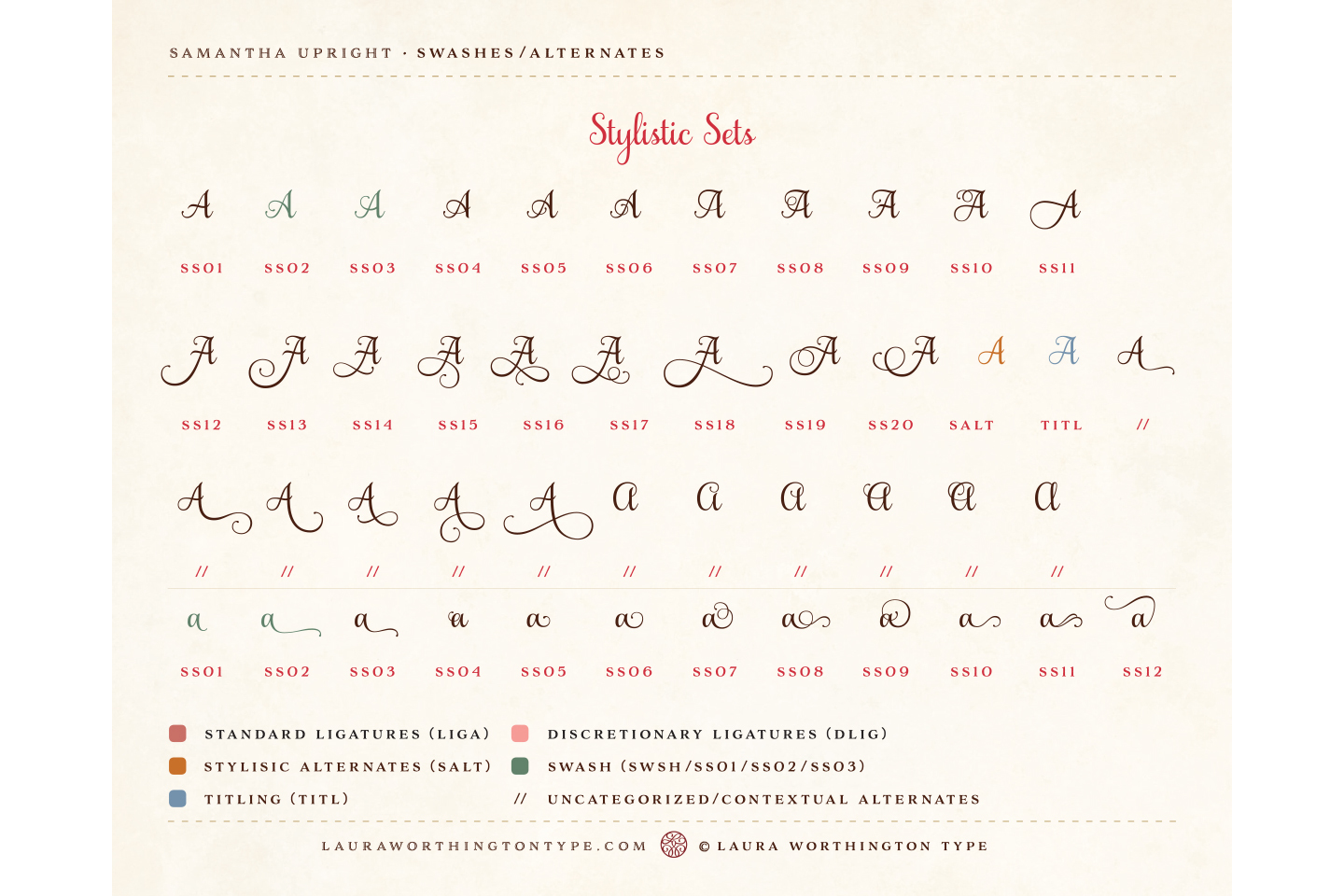 Samantha Script Upright by Laura Worthi | Font Bundles from fntbndls.net We did not find results for: Maybe you would like to learn more about one of these? Check spelling or type a new query.